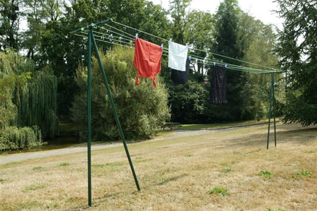 Cet étendoir à linge est doté de 11 barres qui fournissent un vaste espace de stockage. Nous espérons que ce week-end tout le monde aura loccasion de faire sécher son linge au soleil.
